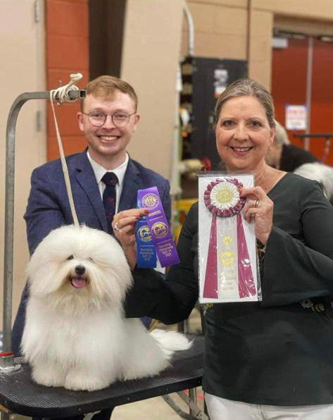 In 2024, we were excited to introduce Young at Heart's Sonata, Nittany and Angeline to the show ring, all three showing great potential. Our exceptional handlers, Mitchell Fox and Jon Corcoran, have been instrumental in advancing Ingrid and Thor in their careers. Katie, with five shows now under her belt as a handler, is eagerly looking forward to showcasing more of our Young at Heart homebred Cotons in future competitions.